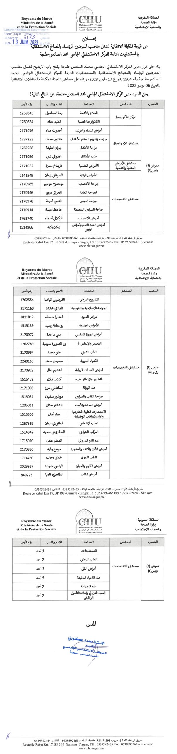 المقابلة للشغل مناصب الممرضين الر ؤساء بالمصالح الاستشفائية بالمستشفيات التابعة للمركز لجامعي محمد السادس-طنجة