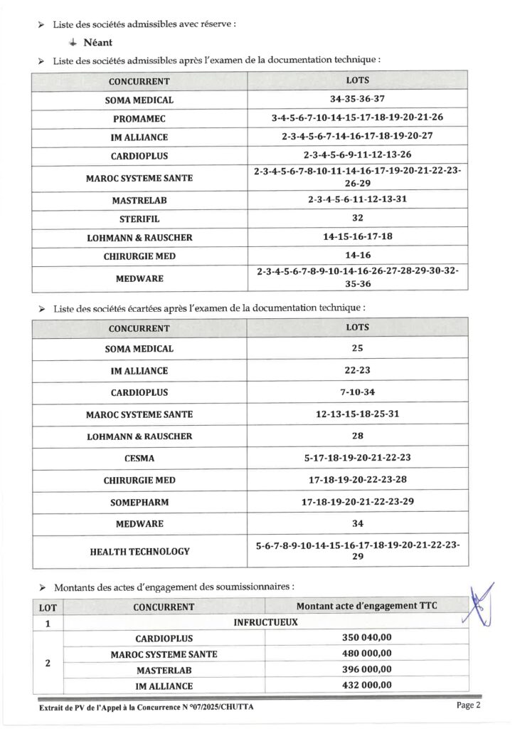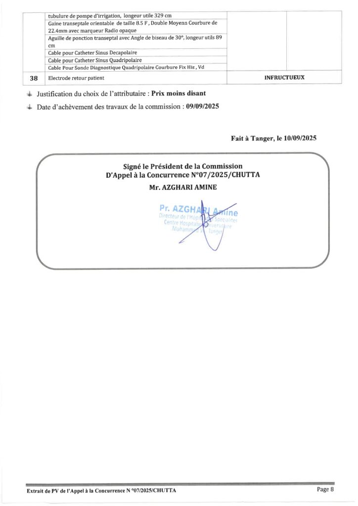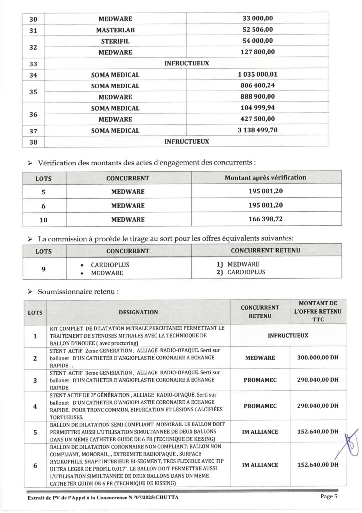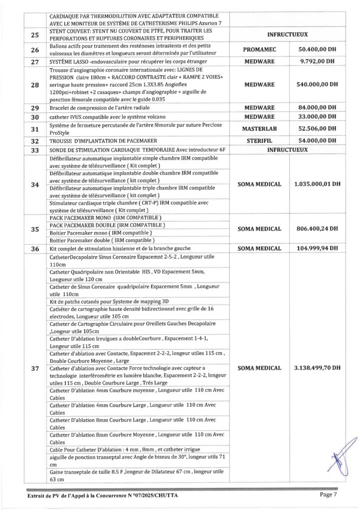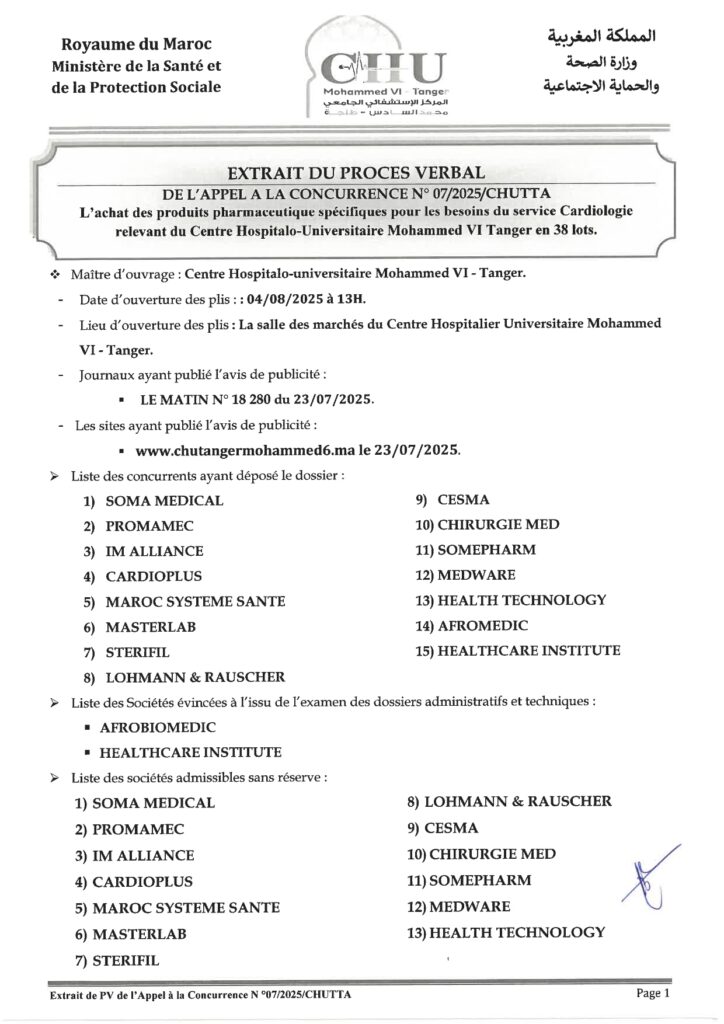 مقتطف من محضر الدعوة لتقديم العطاءات رقم 07/2025/شوتا
