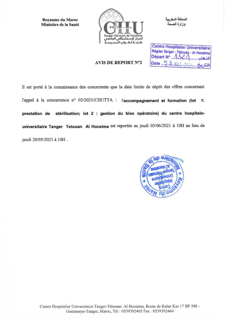 AVIS DE REPORT N°2 "AAC N° 03/2021"