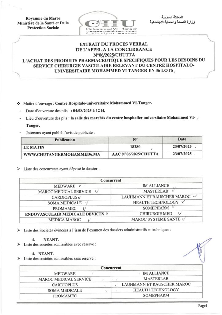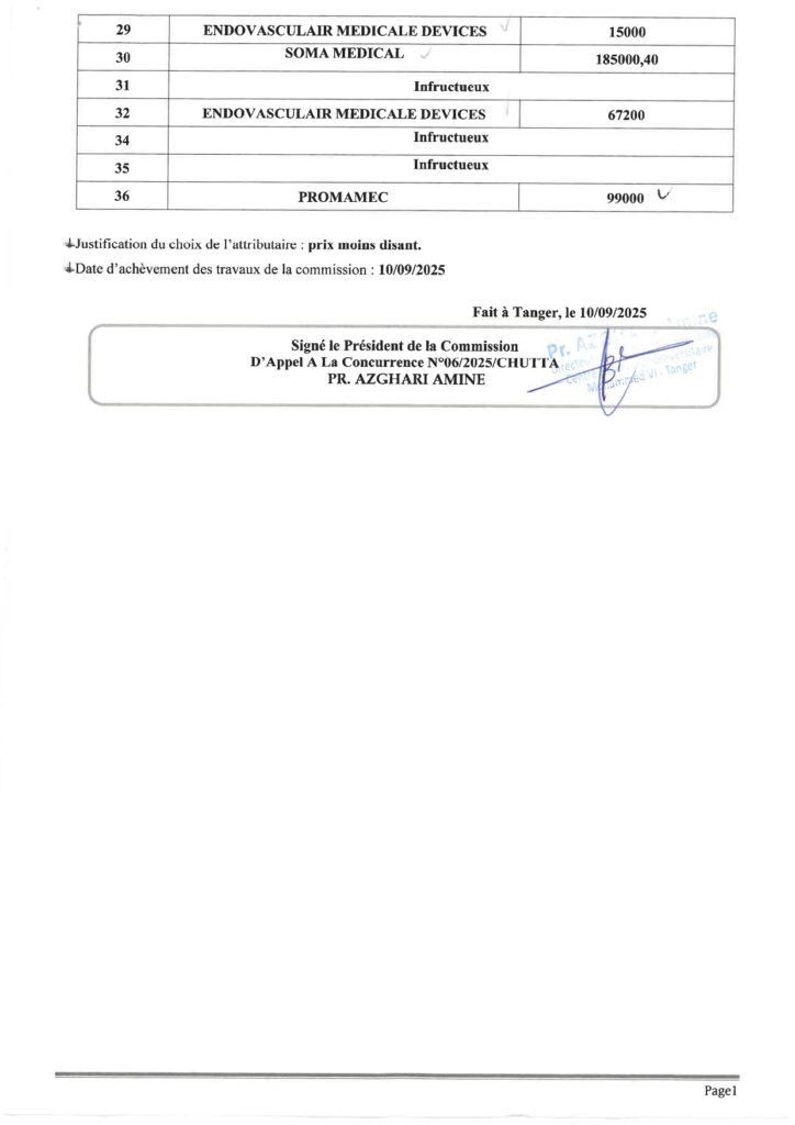 EXTRACT FROM THE MINUTES OF CALL FOR TENDERS N°06/2025/CHUTTA