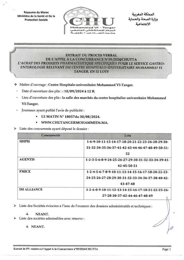 إعــــلان عن نتيجة المقابلة الانتقائيـــة لمنصب رئيس مصلحة الشؤون الإدارية ومركزك التابع للمركز الاستشفائي الجامعي محمد السادس بطنجة