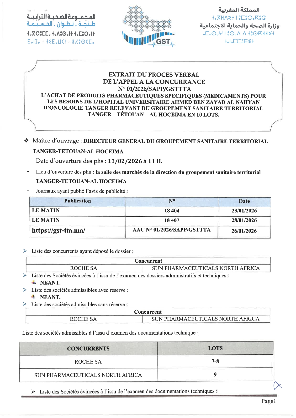 EXTRAIT DU PROCES VERBAL DE L’APPEL A LA CONCURRANCE N° 01/2026/SAPP/GSTTTA