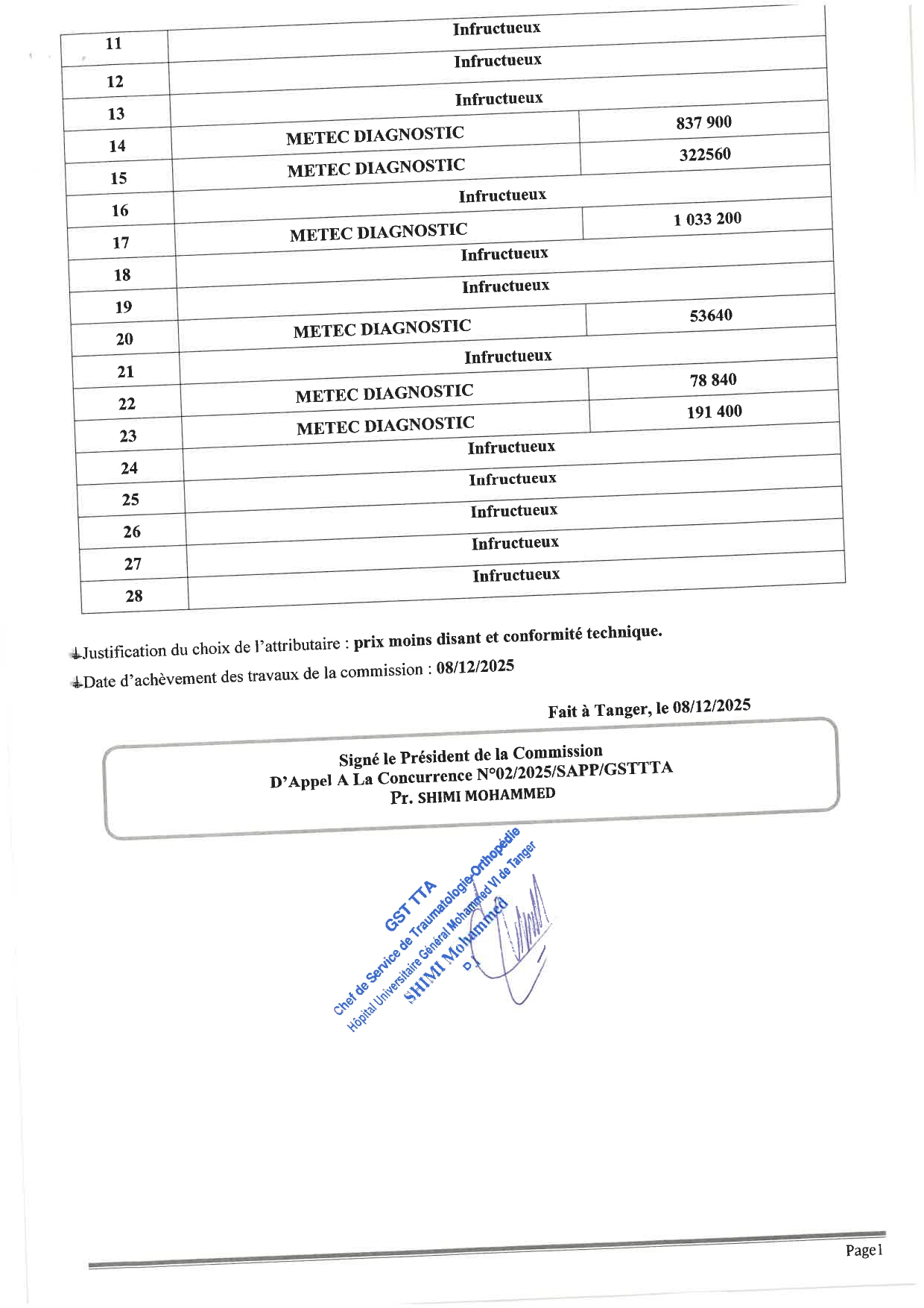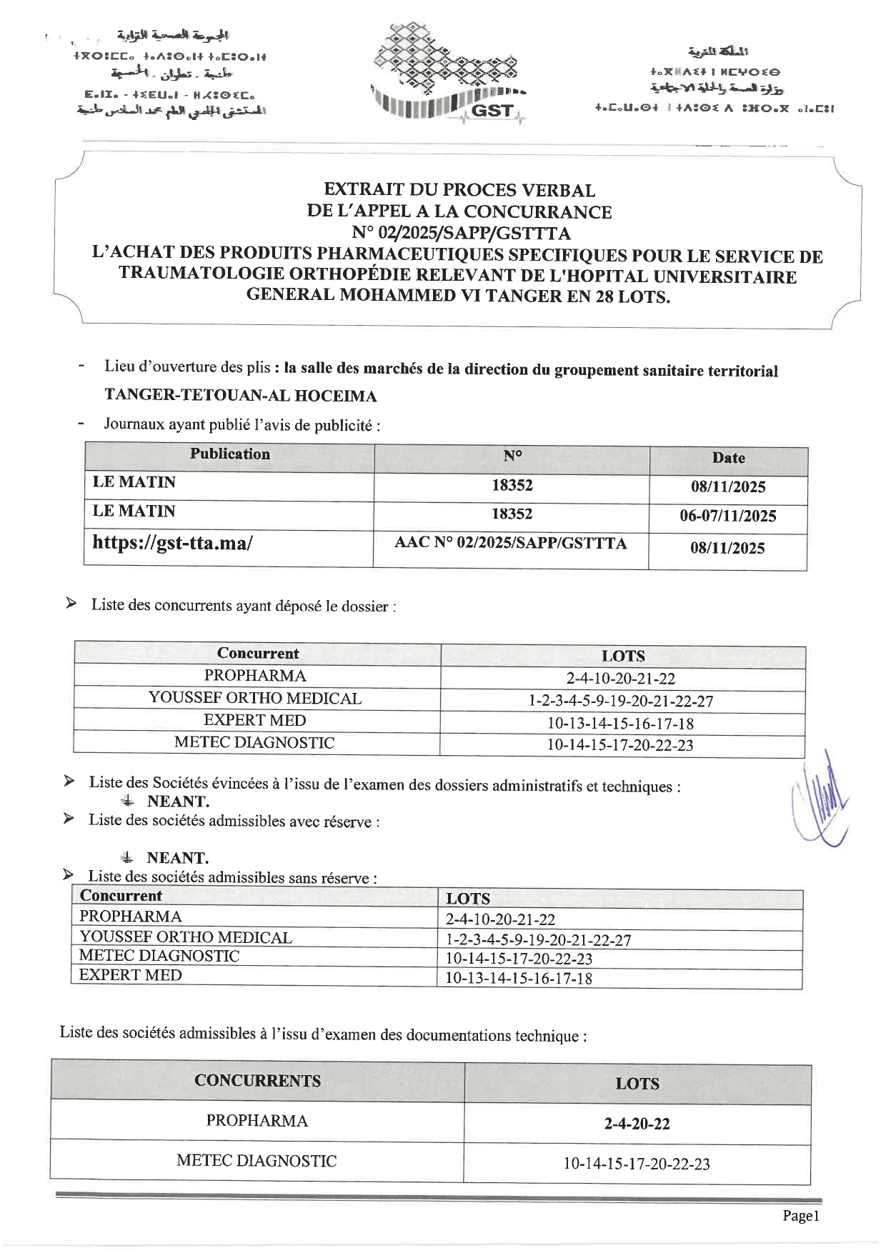 EXTRAIT DU PROCES VERBAL DE L’APPEL À LA CONCURRENCE AAC N° 02/2025/SAPP/GSTTTA